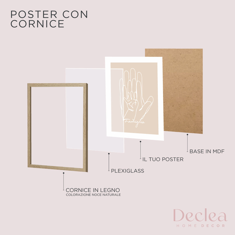 Rendi qualsiasi ambiente piacevole e di tendenza grazie ai Poster Declea, stampa in alta qualità disponibili senza o con Cornice.